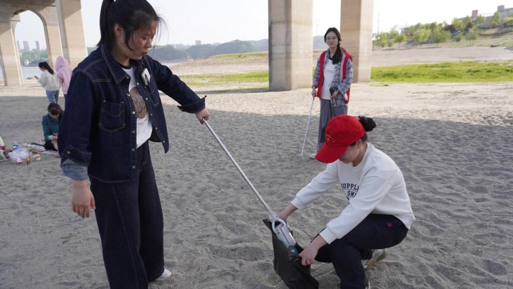 在郧阳汉江二桥下,全体师生学习了习近平总书记给湖北十堰丹江口库区的环保志愿者的回信精神以及南水北调工程的重要意义。随后志愿者手持清洁工具,对江滩边的垃圾进行仔细清扫。