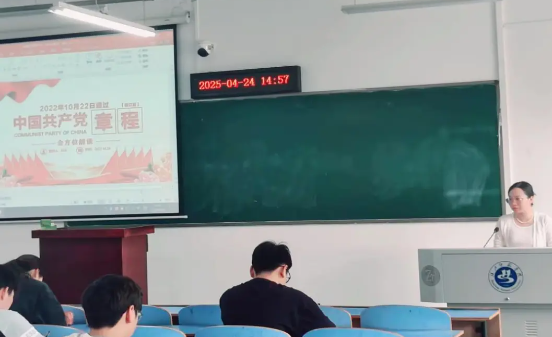 魏东老师带领同学们进行党章的学习,党章是党的根本大法,是全面从严治党的总依据、全体党员言行的总规矩。魏老师从党的二十大对党章做出的重要修改、党章的概述、党章的发展历程、总纲和党章的条文等方面,全面的介绍了党章的重要性,帮助同学们更好的了解关于党章学习的相关知识。