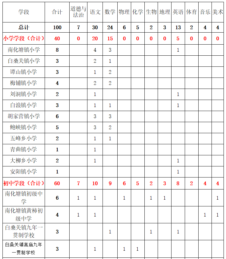 郧阳区2023年面向社会公开招聘新机制教师5名;地方义务教育学校教师100名(非新机制教师),其中小学教师40名、初中教师60名。具体岗位计划如下: