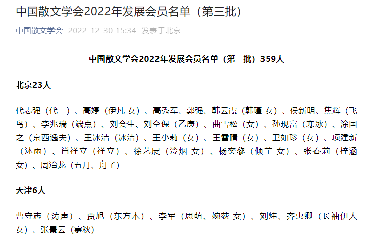 12月30日,中国散文学会发布最新批准入会人员名单, 全国共有359人获批入会,湖北共有11名散文作家,其中汉江师范学院文学院校友黄林榜上有名。