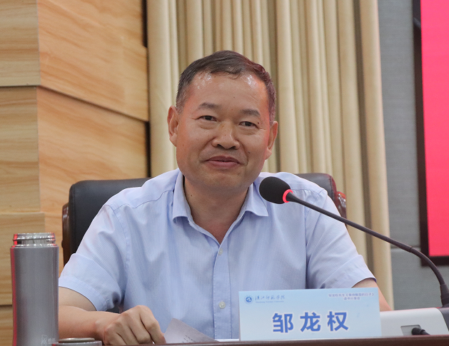 吴红斌副校长在致辞中,介绍了邹龙权校友对学校的支持和个人发展成就,高度评价校友们对母校建设与发展的支持,充分肯定校友们在各行各业的奋斗与奉献,正是因为校友们的辛勤付出,才有了学校被称为“鄂西北基础教育的脊梁”和“党政干部的摇篮”的美誉。吴校长欢迎各位专家学者和作家参加读书分享会。吴校长强调,今天举办的读书分享会,是一项非常有意义的活动,为校园文化增添了亮色,也为文学院的文学青年们奉上一道饕餮盛宴。既可以说是对邹龙权先生文学创作的一次研讨,也是文学院同学们的一次专业导学。