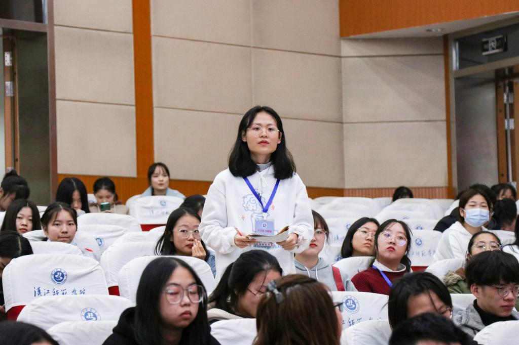党总支副书记任自玲致辞,她强调了辩论赛是文学院的一块金字招牌,在全校星光杯辩论赛中取得了“四连冠”的优异成绩,希望本届选手能传承文学院的优良传统,苦练基本功,,形成独立思考、善于思辨、勇于探索、不畏失败的精神品质。