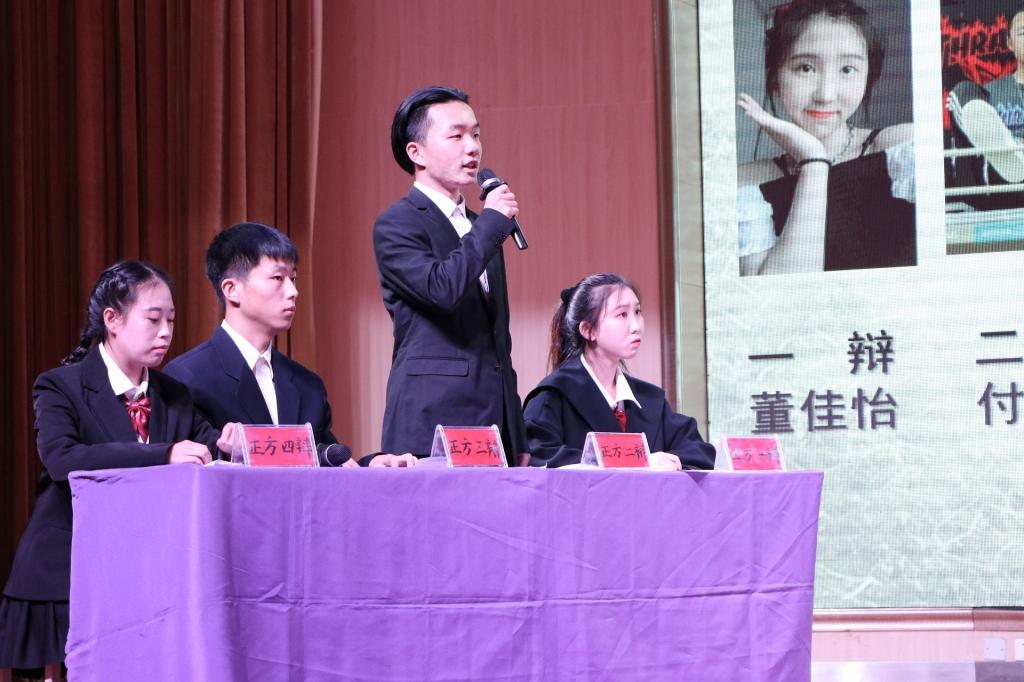 比赛中,正反方两支队伍,八位辩手,面对辩题“时代在发展,我们应为了社会还是个人而存在”展开攻势。比赛共分为6个环节。开篇立论正反方一辩分别用古今中外实例开篇陈词;提问环节双方辩手针锋相对,唇枪舌剑;公辩小结中双方三辩侃侃而谈;自由辩论双方交锋,展现自我风采,现场气氛升温,观众掌声不断;最后总结陈词,把整场氛围推到高潮;观众评委提问环节大家踊跃发言。最后评委点评,指出此次辩论赛双方辩手都紧扣论题犀利评论,体现了辩手丰富的学识,严密的逻辑。