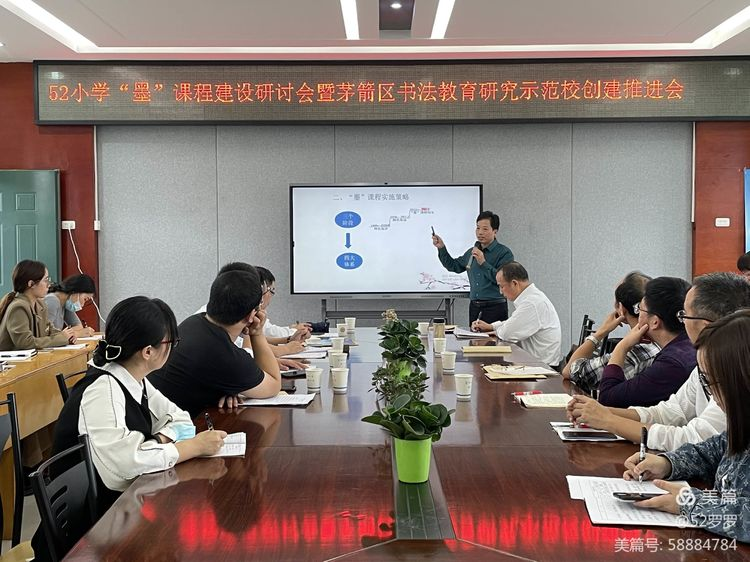 52小学刘敏老师主讲的毛笔书法研讨课《日字头与日字底》结束后,龚明校长对该校“墨”课程建设作了交流。他回顾了52小学23年来衷情于书法教育、热情于书法活动风雨路程,介绍了该校以墨为载体,以墨启智、以墨育人的书法课程建设的理念与路径。