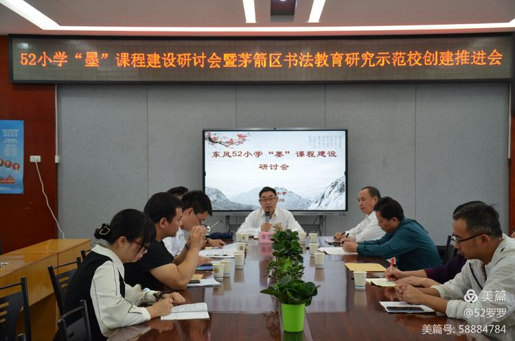 9月28日下午,52小学“墨”课程建设研讨会暨茅箭区书法教育研究示范校推进会在东风52小学举行。文学院书法教研室曹国军教授、黄振东老师、王刘涛老师、闻博老师受邀参加会议并作交流发言。茅箭区教育局资助中心李国清主任出席座谈会。