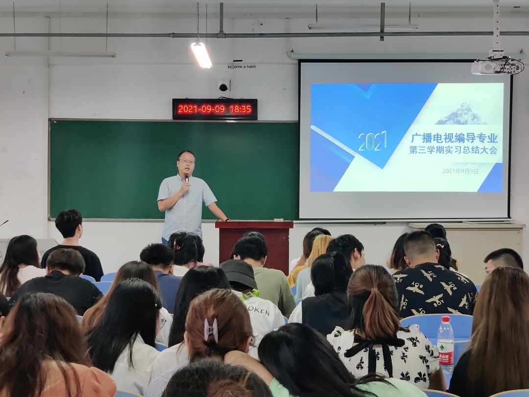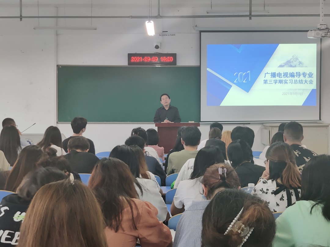 9月9日下午,文学院广播电视编导专业在崇文楼A604召开第三学期实习总结大会。文学院院长郝文华,新闻传播教研室专业教师,广播电视编导专业2019、2020级全体学生参会。大会由新闻传播教研室主任戴文雄老师主持。