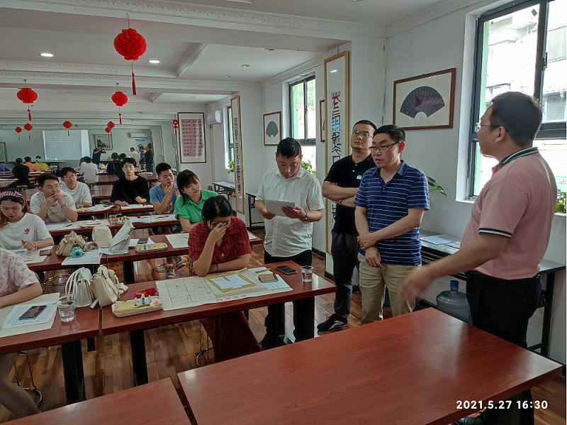 5月27日下午,在文学院副院长曹国军带领下,书法教研室部分教师赴拉斐尔美术学校和紫藤轩书画学校检查书法学20级学生见习工作。