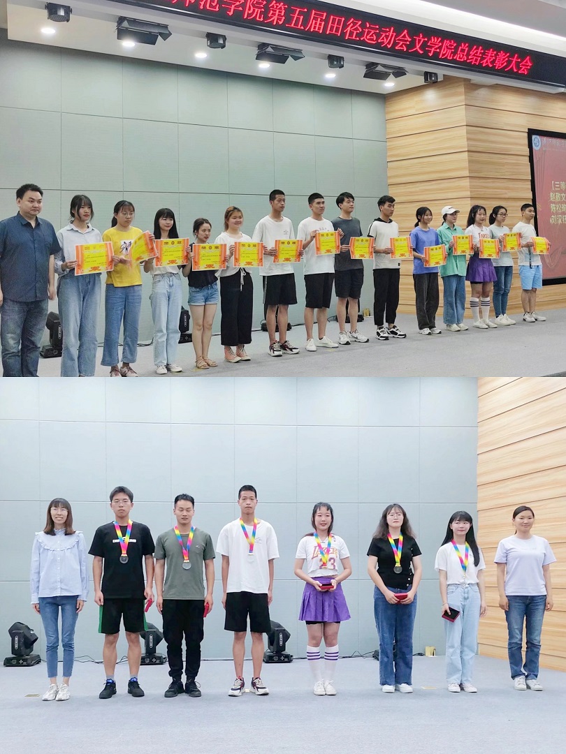 5月11日晚,文学院在明理楼c101召开第五届田径运动会总结表彰大会,对本次运动会中的优秀运动员和先进工作者进行表彰。文学院副院长曹国军、党总支副书记任自玲、学工办主任彭涛和全体辅导员老师参加了大会。学院领导、老师鼓励大家培养奋勇拼搏意志、弘扬团结协作精神、练就健康体魄。