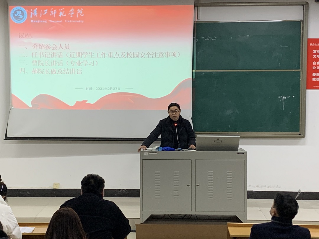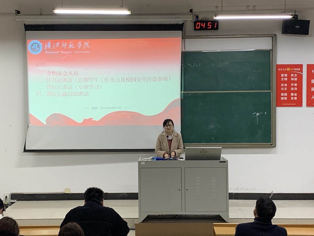 郝文华院长在会上热情地欢迎转专业生的加入,感谢大家对文学院专业的认可。他从实际出发,解答了转专业同学的疑问,提出了各专业人才培养的目标和要求,并为同学们分享了相关专业课学习的电子资源;希望大家做好学习规划、明确发展方向,在新的起跑线上奋发努力,力争早日追赶上本专业同学;鼓励新同学积极参加文学院丰富的文化活动,以更好地融入新环境。