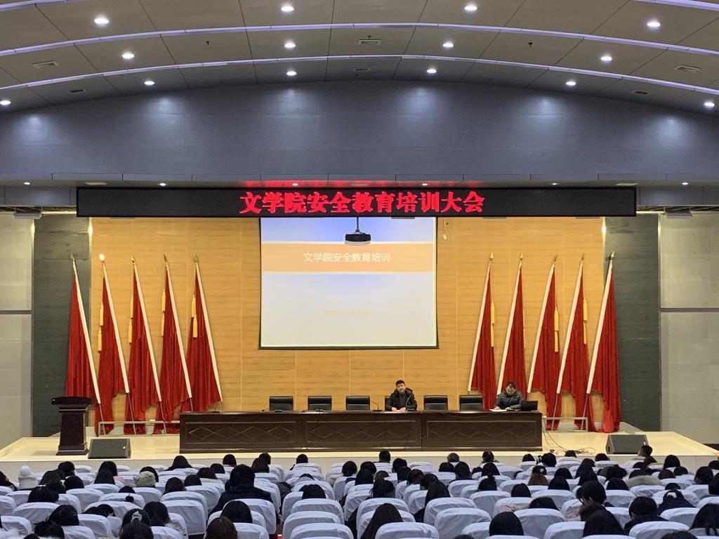 为提升学生防范意识、确保学生人身及财产安全,12月14日晚19时,文学院于学术报告厅召开安全教育培训大会。保卫处处长胡江涛,文学院全体领导班子、辅导员及19级、20级600余名学生代表参加了大会。大会由彭涛老师主持。