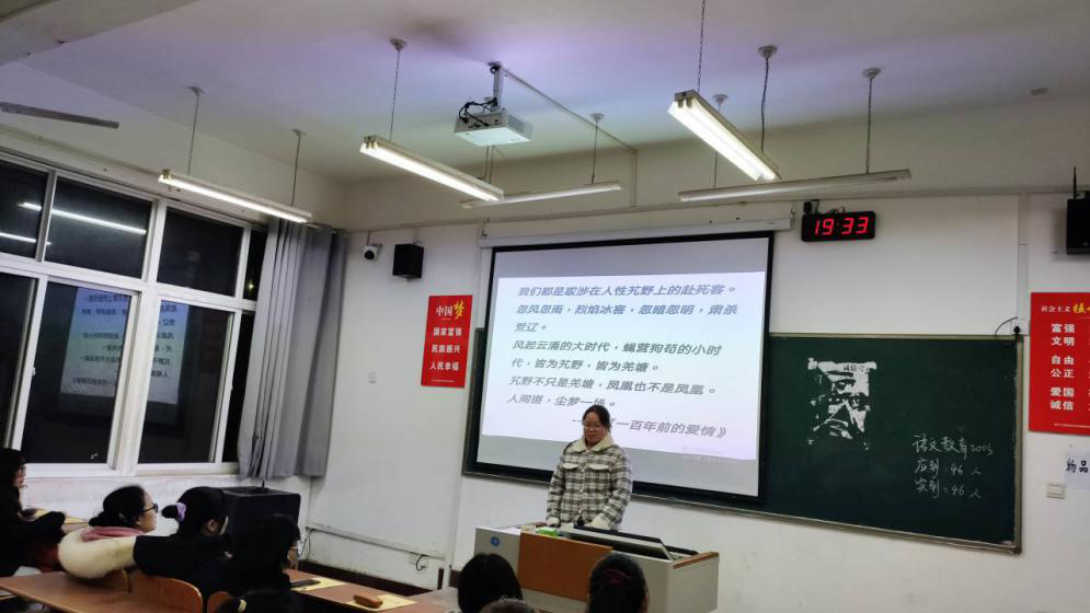 2020年12月13日晚7时,文学院语文教育专业2003班“言由心声”文学社在班主任王磊老师的指导下,于北京中路校区6404教室举办了第一期书评分享会。此系列分享会旨在加强学生批判性思维,提升学生说课演讲能力。此次书评分享会由罗玟同学担任主持人。