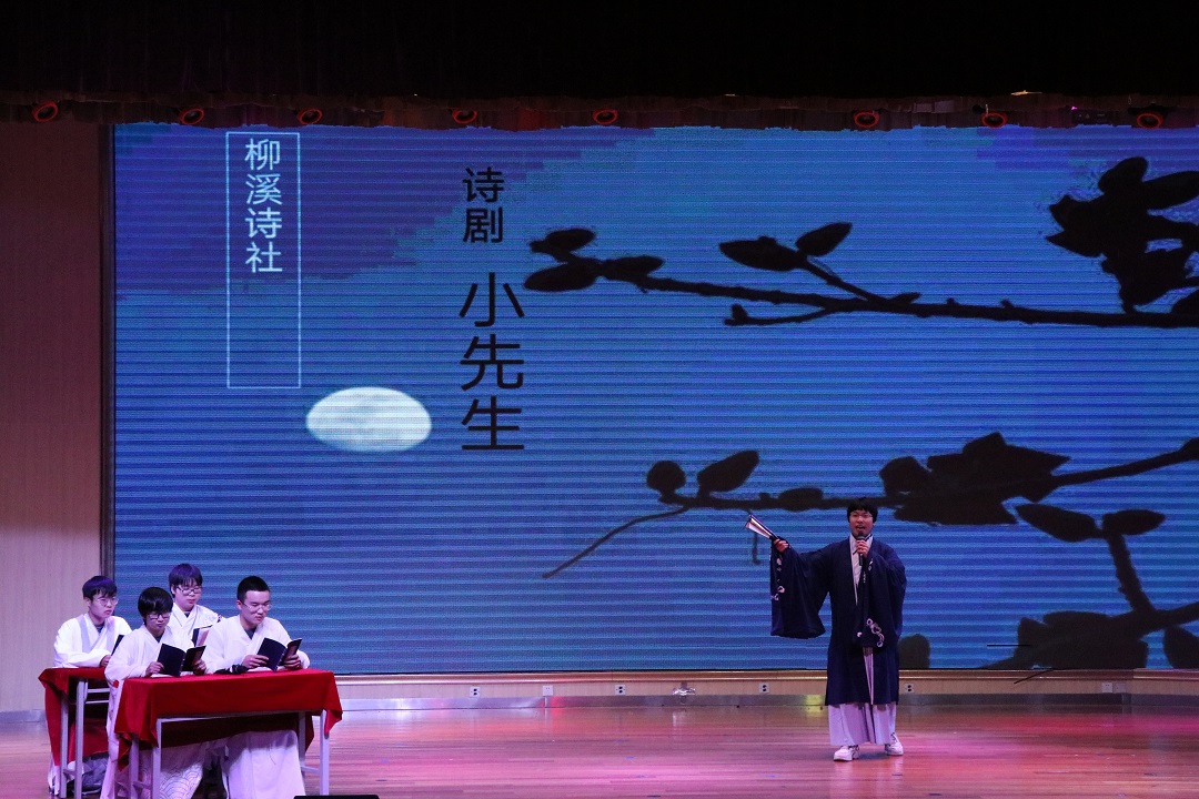 晚会中,柳溪诗社带来诗剧《小先生》,用幽默的方式吟诵诗词,讲述深刻的人生哲理,看似无意却饱含着丝丝深情。合唱《夜空中最亮的星》,众人手捧的星灯,照亮追梦人前行的道路。相声社带来的《对春联》语言诙谐幽默,对对联时文字运用巧妙,妙趣横生,笑点十足。雷雨话剧社带来的话剧《活着》将观众带入历史,感受大时代背景小人物的命运曲折。小品《四大才子》“才子佳人相配”闹剧不断,演员展现了极强的舞台感染力,在幽默风趣的对话中穿插古诗词名句,将现场气氛推至高潮。《不屈中华》慷慨激昂的朗诵,展现中华儿女雄伟的气魄,不屈的灵魂,发人深思。一首说唱《庆功酒》结合传统乐器鼓,书法、街舞和说唱多种元素,更是传播为梦想了不畏艰难的正能量。小品《青春无悔》演绎的是一群支援西藏的志愿青年由抗拒前往西藏,到投身建设西藏的巨大转变,激励青年大学生要有时代担当。最后,在《追梦人》的悠扬旋律中,全体演员登台,共同挥动小红旗,为本次汇演画上了完美的句号。
