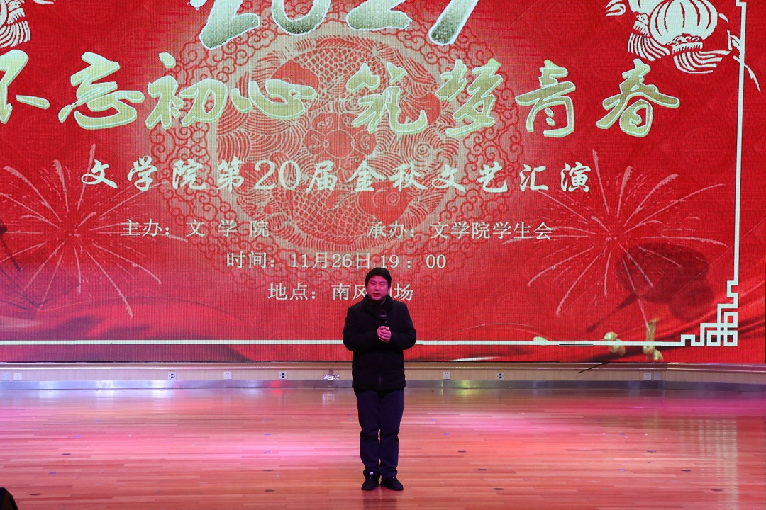 校领导周进芳及学工部、校团委,文旅学院、外国语学院、文学院的领导莅临现场,与文学院数百名师生齐聚一堂。文学院院长郝文华上台致词,总结回顾了过去一年文学院取得的各项佳绩,鼓励文学院学子珍惜当下来之不易的安定环境,凝心聚力,奋发有为。