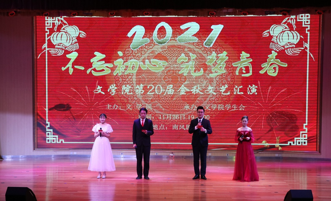 11月26日晚,南风剧场掌声雷动,欢声笑语不断,文学院第二十届金秋文艺汇演在此精彩呈现,汉语言、语教、广编及书法各专业学子均登台献技,形式多样、内容丰富、积极而又诙谐的语言类节目赢得了现场观众一致称赞。