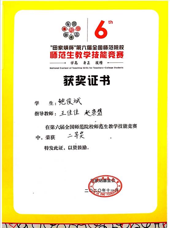 以赛促学、以赛促教、以赛促研,是我校我院的培养方式之一。师范生教学技能竞赛也是一名师范生展现自我、提升自我、反思自我的平台。文学院一直高度重视师范生职业技能培养,近年来我院学子也在各类比赛中屡获佳绩。我院语教专业16级学生李琳滋考上专升本后,代表湖北师范大学参加此次比赛,也获得二等奖的好成绩。