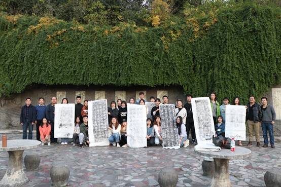 下午5点,完成了墨苑内24块碑石的“美容”任务。最后,同学们展示出所有的胜利果实,兴奋的邀请领导和老师们在描金石碑前大合照。