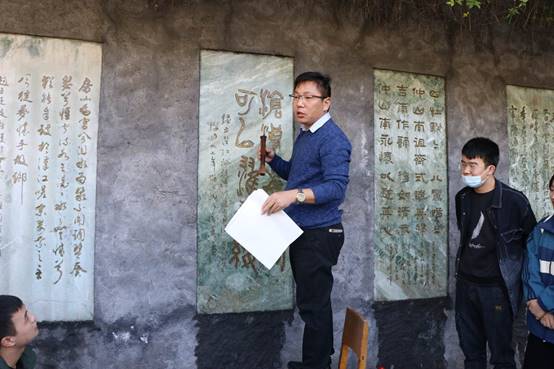 11月7日上午,在文学院曹弋书记、曹国军副院长和专业教师的带领下,文学院2019级书法学专业学生来到汉江师范学院丹江校区开展书法实训活动,本次活动的主要内容是学习了解拓片制作方法,同时为丹江校区著名景观墨苑内的所有碑石进行描金“美容”。
