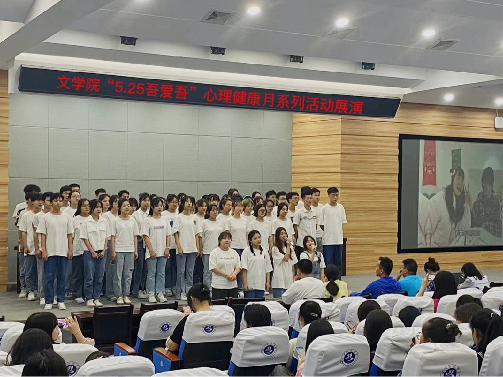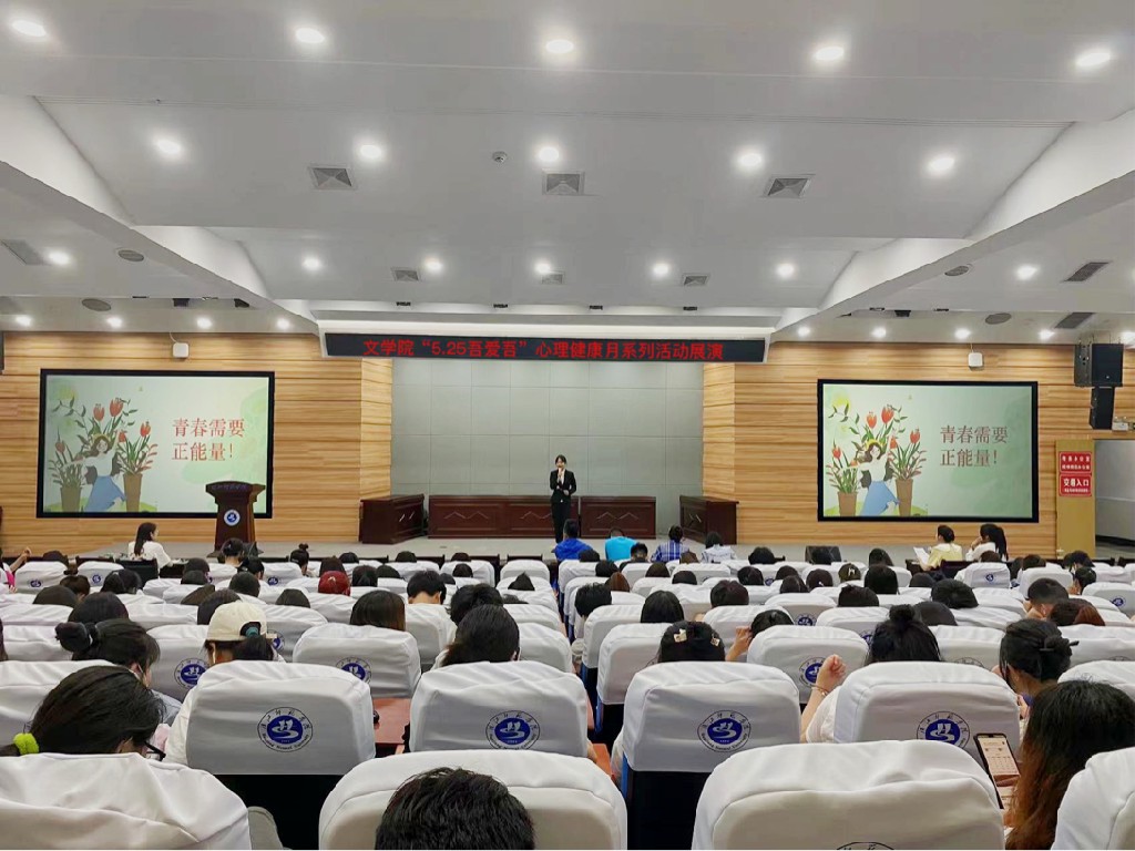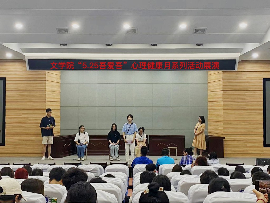 为积极响应学校第三届心理健康文化节号召,文学院筹备为期1个多月的“5.25吾爱吾”心理健康月系列活动展演于6月2日19点在明理楼C101圆满落幕。莅临本次展演的领导嘉宾有文学院党总支副书记任自玲老师,文学院学工处主任彭涛老师以及辅导员郑胜男、柳宇、杨超、蔡兆祝老师。