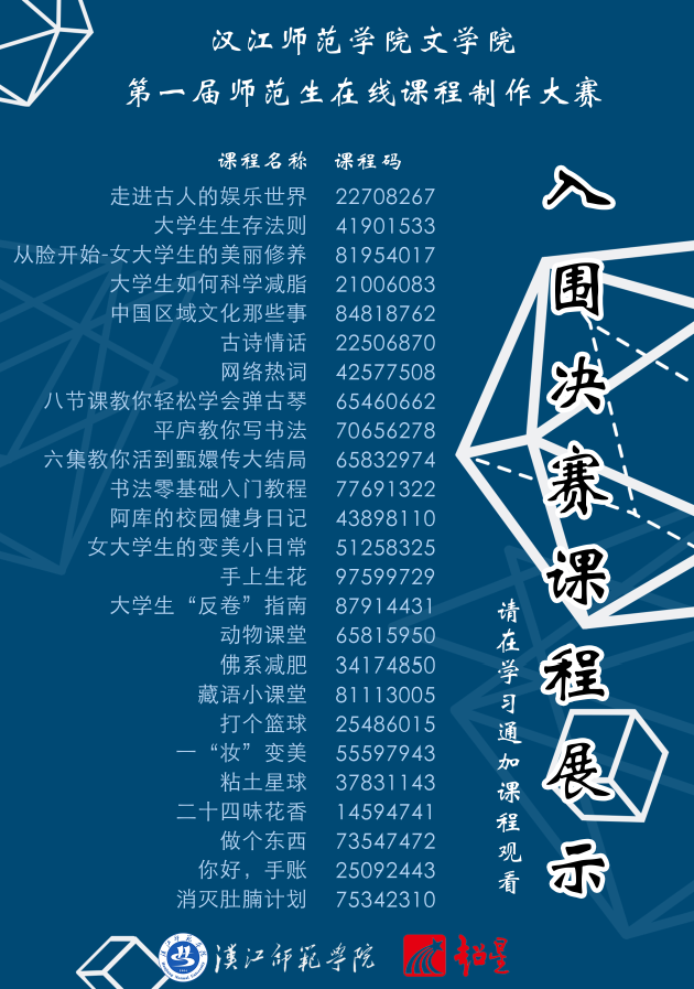为了扎实培养师范生核心的素养,锻炼课程设计制作能力,同时推动文学院师生熟练使用超星学习通平台辅助教学,文学院联合超星集团有限公司举办文学院第一届师范生在线课程制作大赛。