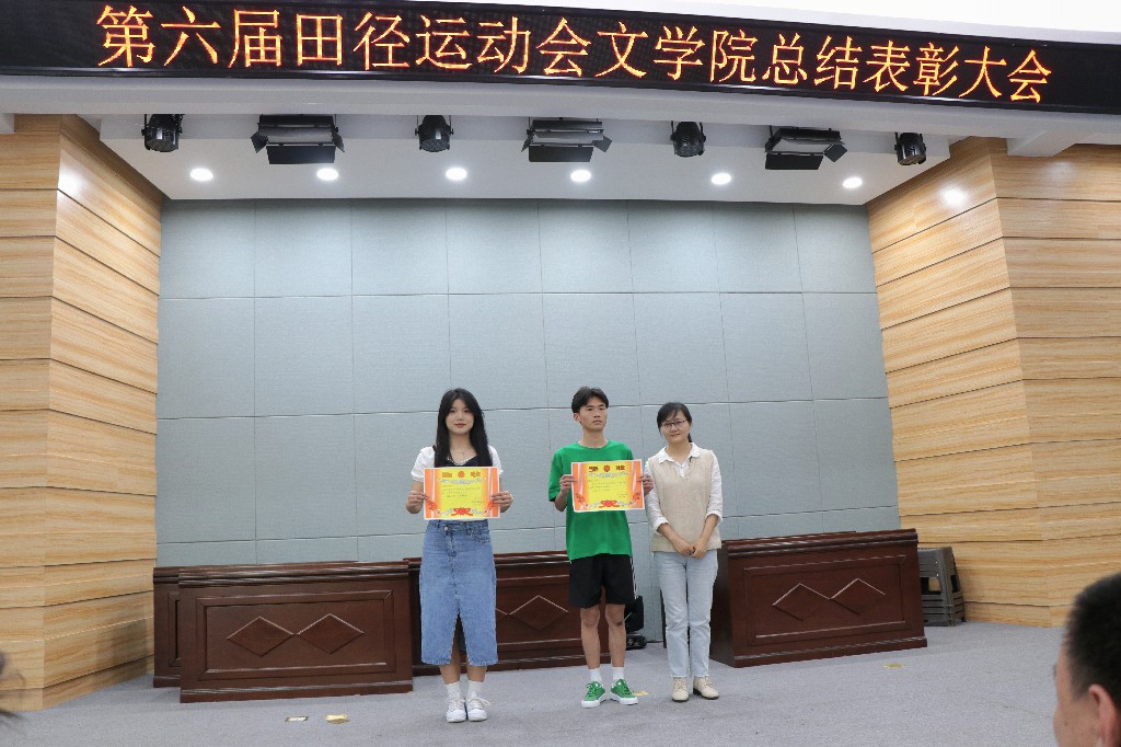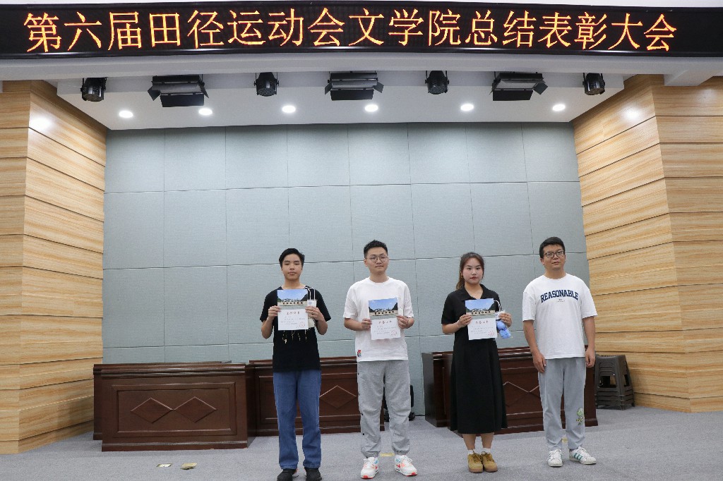 在本次校运会中,我院学子秉持优良传统,收获7枚金牌、9枚银牌、4枚铜牌,勇创男子团体总分第一名、团体总分第二名、女子团体总分第三名的优异成绩,为文学院争得了荣誉。
