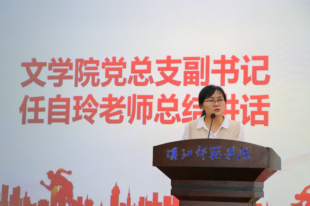 文学院党总支副书记任自玲在最后对此次运动会进行总结。她讲到,我们文学院在运动员优势、男生总数都并不突出的客观条件下,创下了近年来的最好成绩。总体看来,所有运动员和组织人员在此次运动会中呈现出三个方面的特点:一是积极进取,成果优异;二是组织有序,准备充分;三是团结文明,奋勇拼搏。她希望大家把这种精神也发扬到学习与组织工作中,保持奋发向上、团结进取的体育精神,迎接来年的体育盛会。
