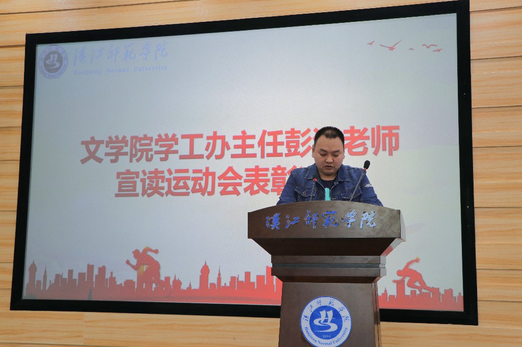 5月19日下午,文学院在明理楼C101召开第六届运动会总结表彰大会,文学院党总支副书记任自玲、学工办主任彭涛、文学院辅导员以及全体文学院运动员参加此次大会。