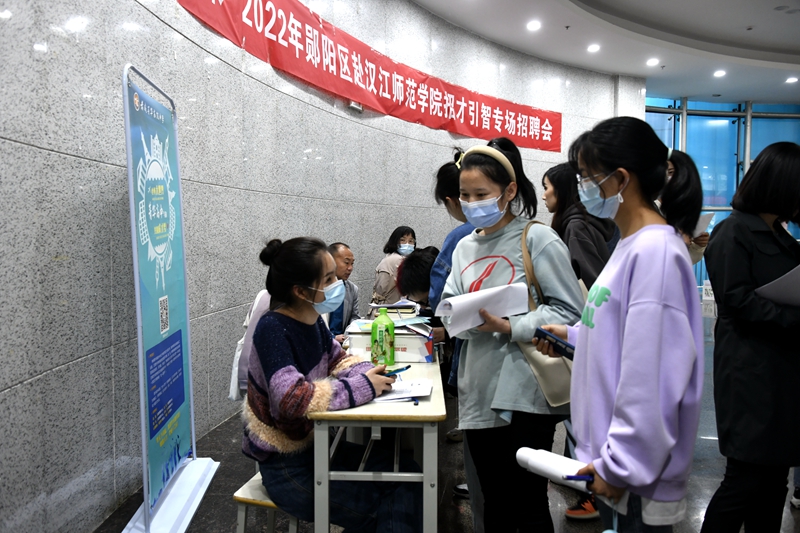 本次招聘会由文学院、历史文化与旅游学院联合承办,采取同步直播的形式进行。会前集中观看了郧阳区招才引才专题宣传片《毕业了来郧阳吧》。随后,来自郧阳区的21家企业单位在尚艺楼大厅举行招才引智专场招聘会,吸引众多同学咨询签约。