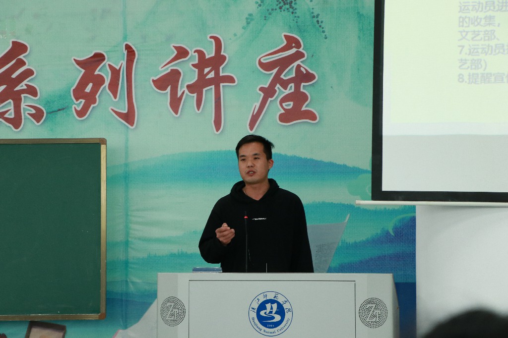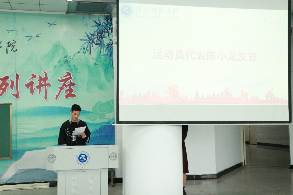 运动员代表陈小龙同学发言,表示文学院的运动健儿们一定会努力拼搏,发挥出自己的实力,为学院争光。