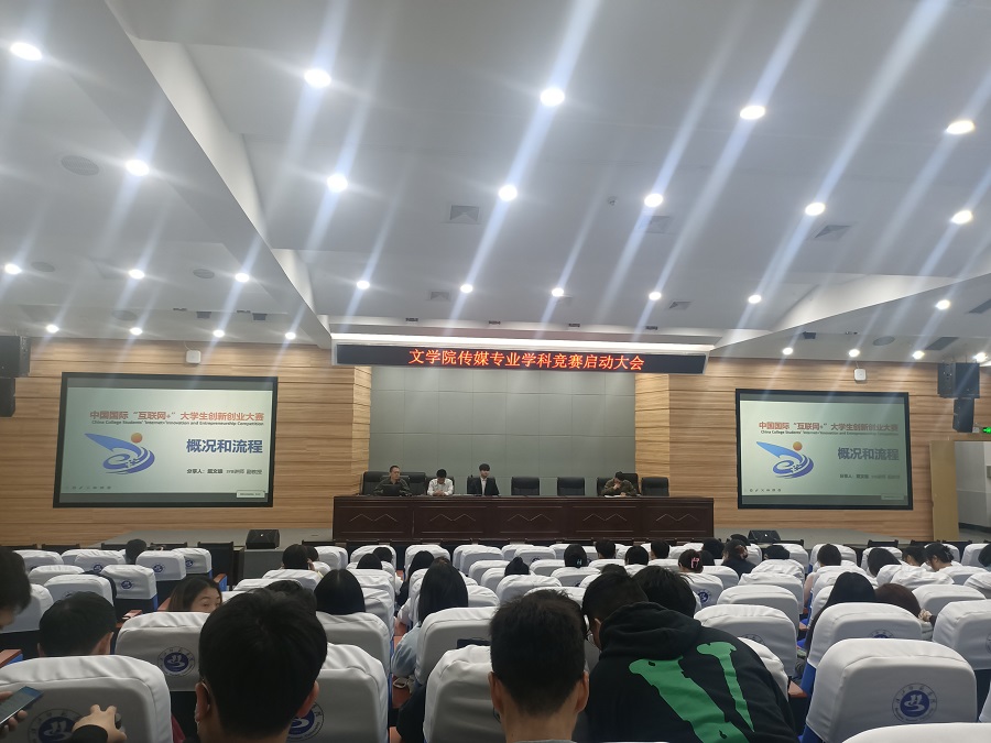 为积极鼓励文学院传媒专业学生参与第8届中国“互联网+”大学生创新创业大赛、第14届全国大学生广告艺术大赛和2022年大学生创新创业训练计划等学科竞赛,提前让学生了解赛事的概况、特点及具体流程,4月12日晚7:00,文学院在明理楼C101举办了竞赛动员大会。文学院副院长赵崇璧副教授、新闻传播教研室主任戴文雄副教授,以及杨思宇、史鑫涛、郭成和赵江南四位老师参加会议,文学院广播电视编导19级、20级、21级和网络与新媒体21级全体学生参会。动员会由郭成老师主持。