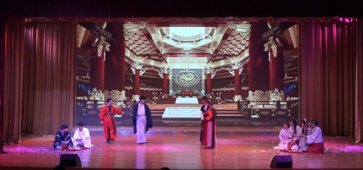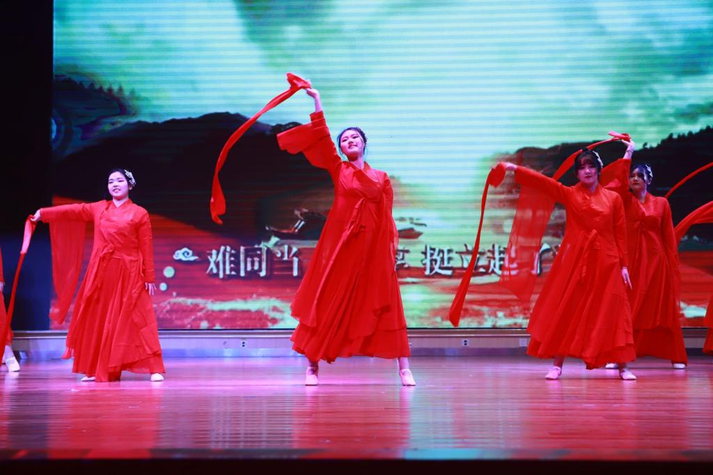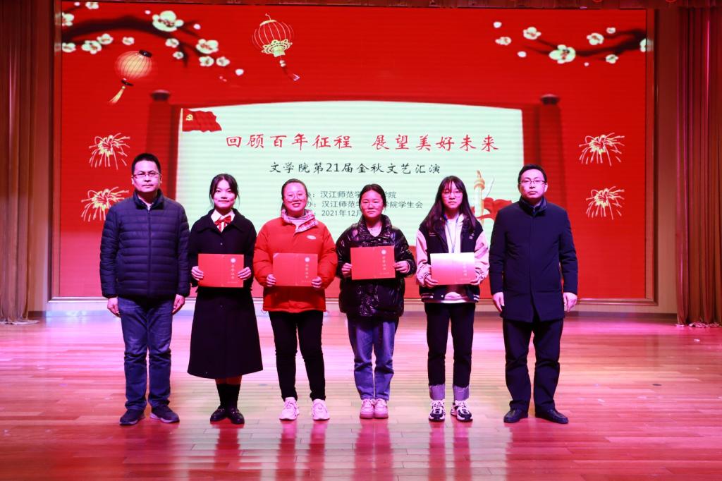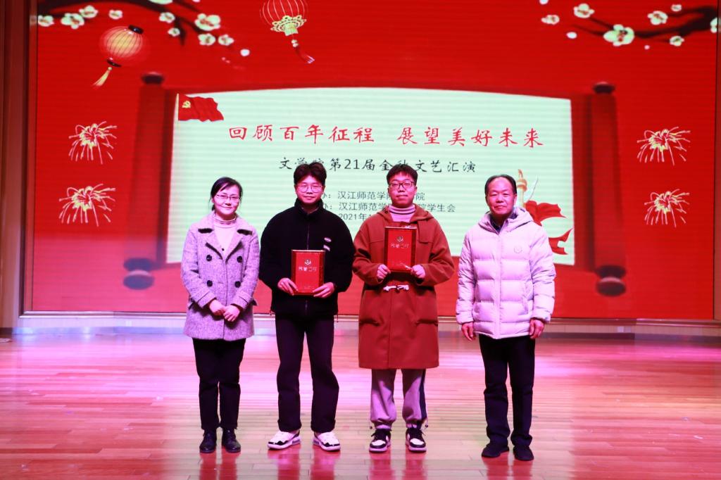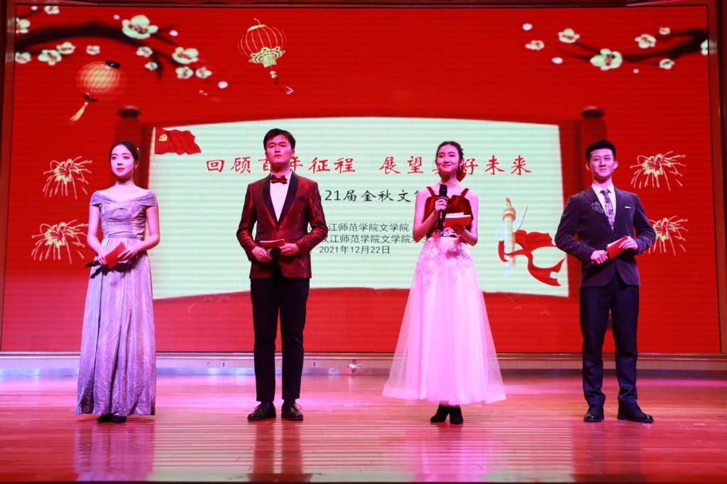 各个节目都不遗余力地将文化内涵厚植到节目中去,凸现出文学院的人文底蕴。开场舞《万疆》以舞献国,祈愿祖国万疆平安。由柳溪诗社和圣风文学社合作带来的表演《谪仙》更是画风灵动,诗、酒等元素在展示李白故事与盛唐气象的流风余韵中运用自如。京剧《春闺梦》将国粹搬上了金秋的舞台,向我们展示着了中华传统文化的无限魅力。话剧《张桂梅》将“张妈妈”无私奉献山区教育的动人故事演绎得淋漓尽致,传播了教书育人的正能量。“自信人生二百年,会当水击三千里”,一首集体朗诵《百年凝望》献礼党的百年华诞,激励青年一代再创辉煌。本场文艺晚会中,文院儿女将心中对祖国、对学校、对学院的深情化作感人至深的话语,化作热情洋溢的歌舞,让本次晚会在《最美的期待》的大合唱中完美落幕。