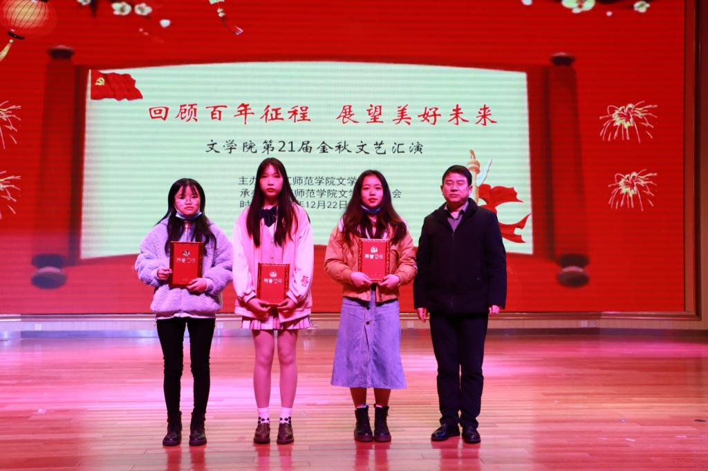 晚会正式开始前举行了隆重的颁奖活动,副院长曹国军教授宣读了本年度获得国家励志奖学金、校园知行之星和校级奖学金的学生名单。随后莅临晚会的领导老师们为近期举行的三笔字大赛、最美寝室评比、“民族团结一家亲”征文活动中的优秀集体颁发了荣誉证书。