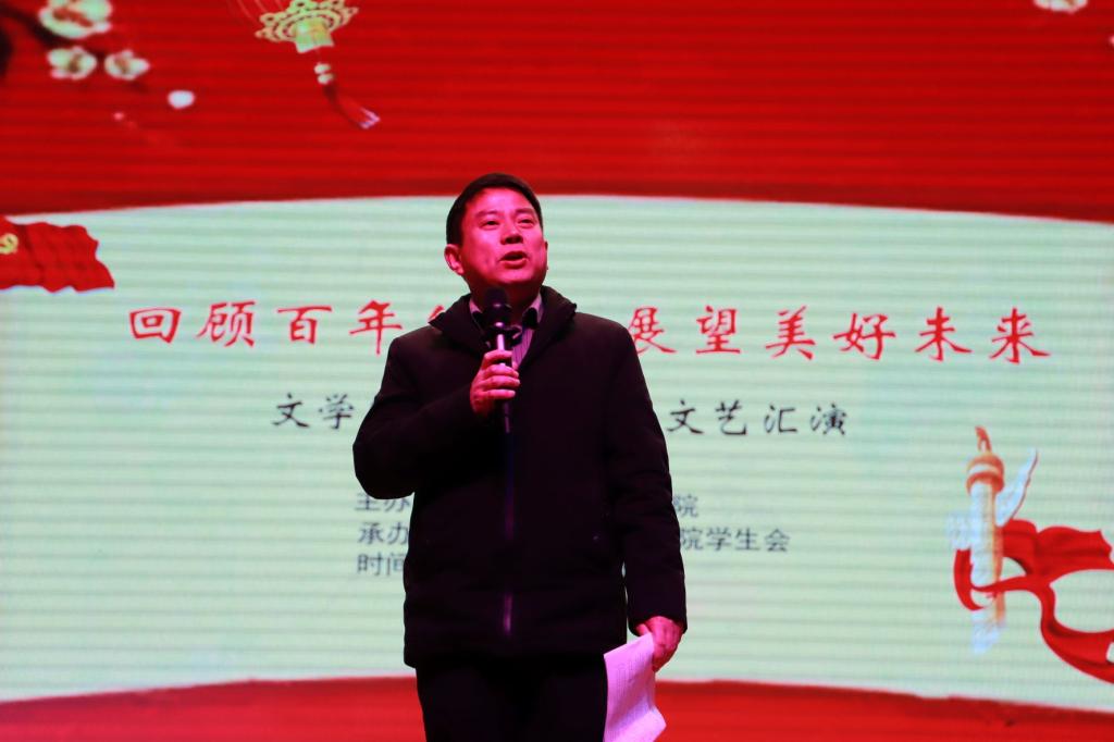 文学院院长郝文华教授致开幕词。他总结了近一年文学院师生取得的优异成绩,激励同学们要珍惜青春时光,在大学的广阔平台上绽放光彩,站得更高,看得更远。
