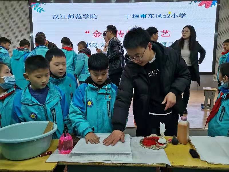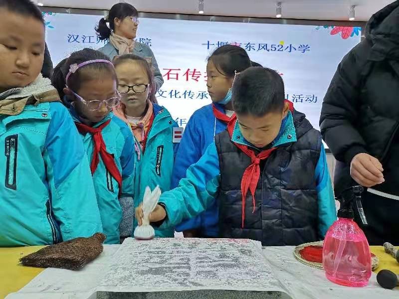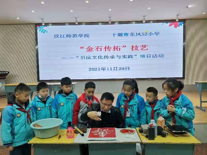 近日,为传承优秀传统文化,服务地方教育事业,书法文化研究中心走进十堰市东风52小学、五堰小学等学校,开展“书法文化传承与实践”活动,传授“金石传拓”技艺,受到师生们一致好评。