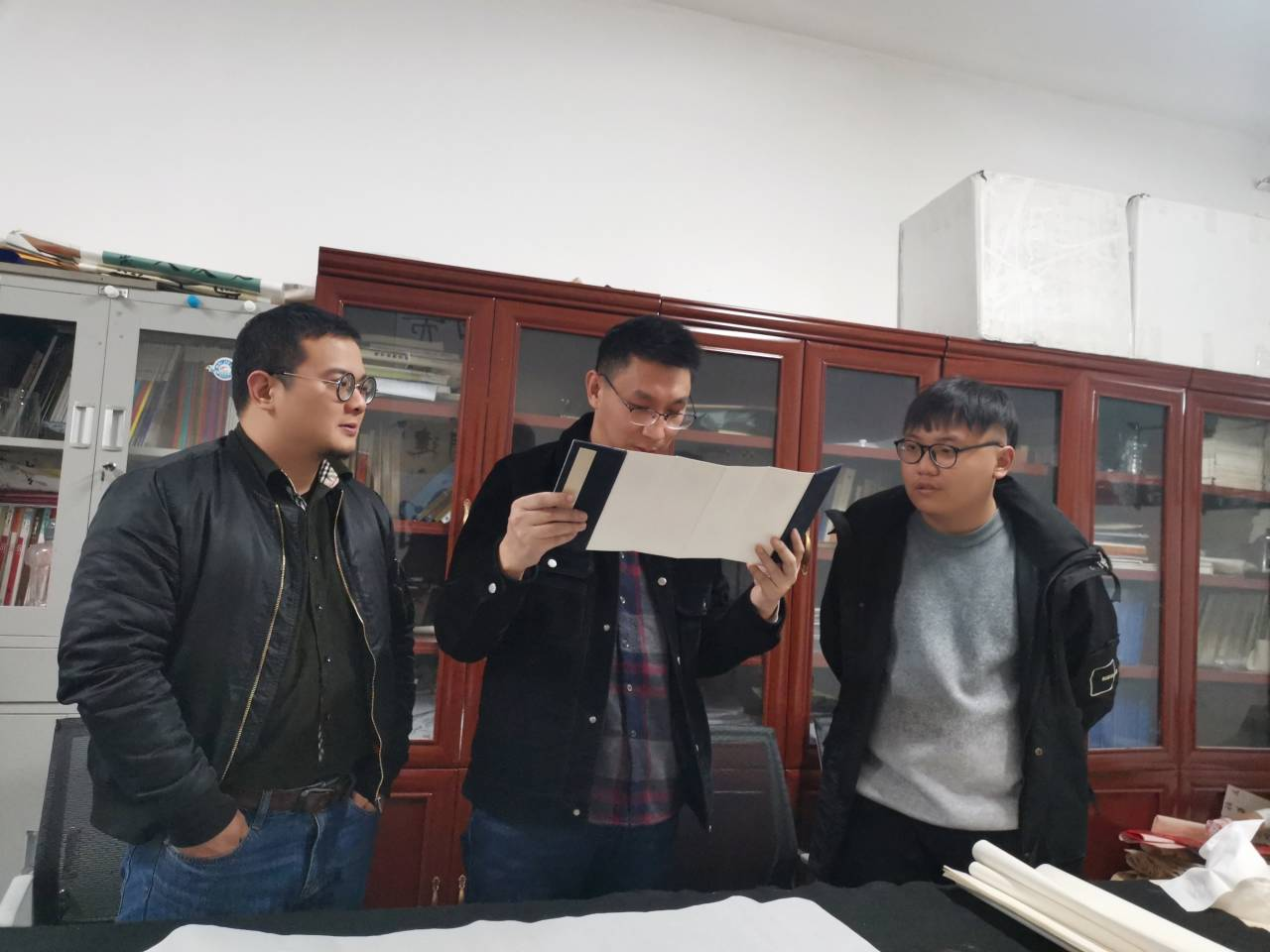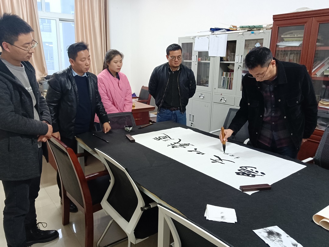 讲座开始前,刘博士还在崇文楼B509与书法教研室的老师们开展了书法教学与科研座谈,点评了部分书法学专业学生的印章、书法作品,并为文学院书法教研室题字。
