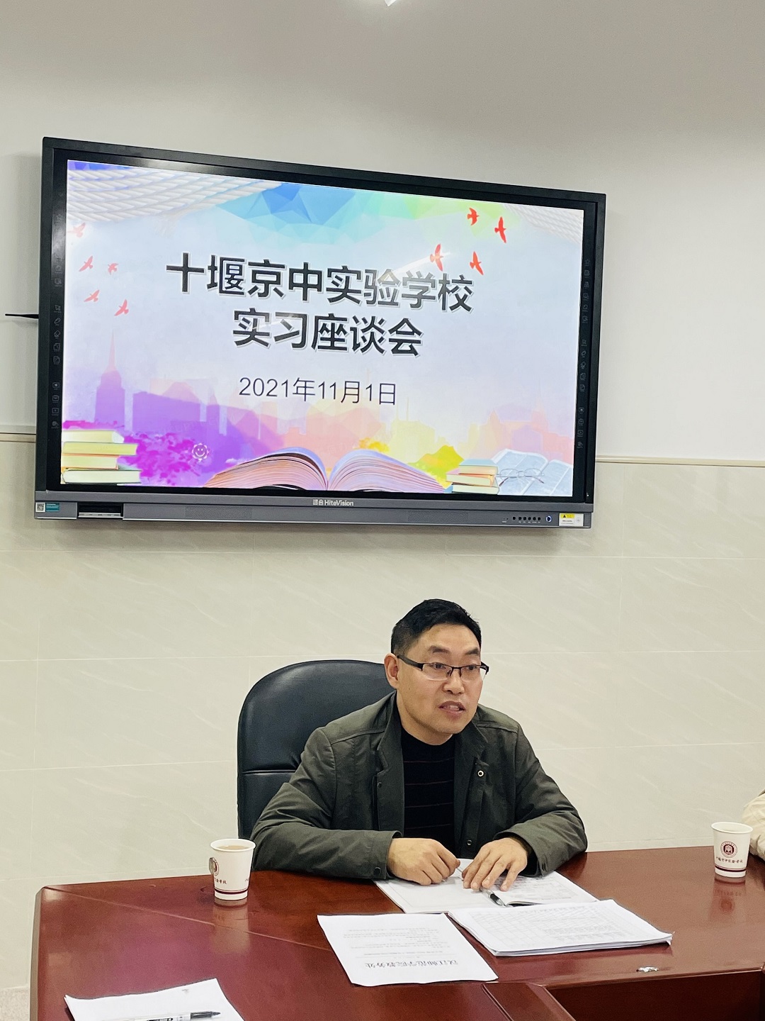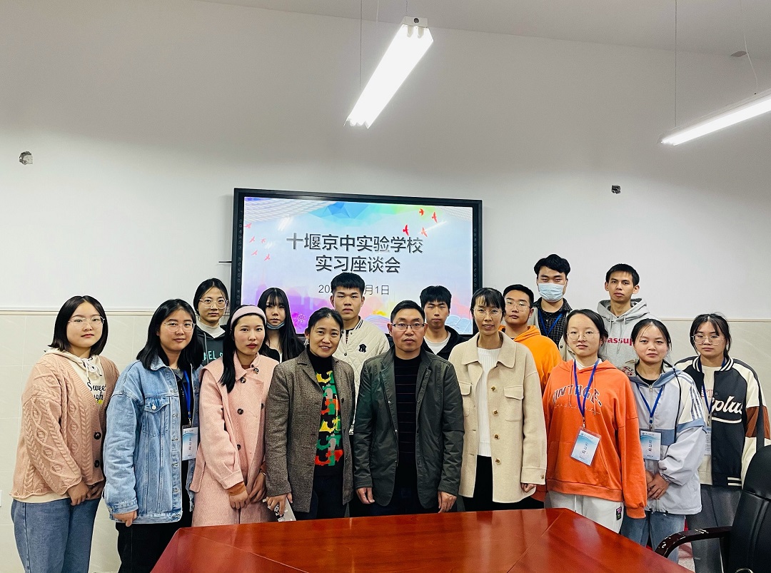 为深入了解师范生教育实习工作开展情况,进一部加强与实习学校的沟通与联系,11月1日,文学院副院长曹国军带领办公室主任吴兴、辅导员柳宇及实习带队教师谭赟赟一行前往十堰市京中实验学校,对2018级师范生的实习情况进行中期检查并召开座谈会。京中实验学校徐萍、赵胜刚、张璇等老师参加了座谈会。