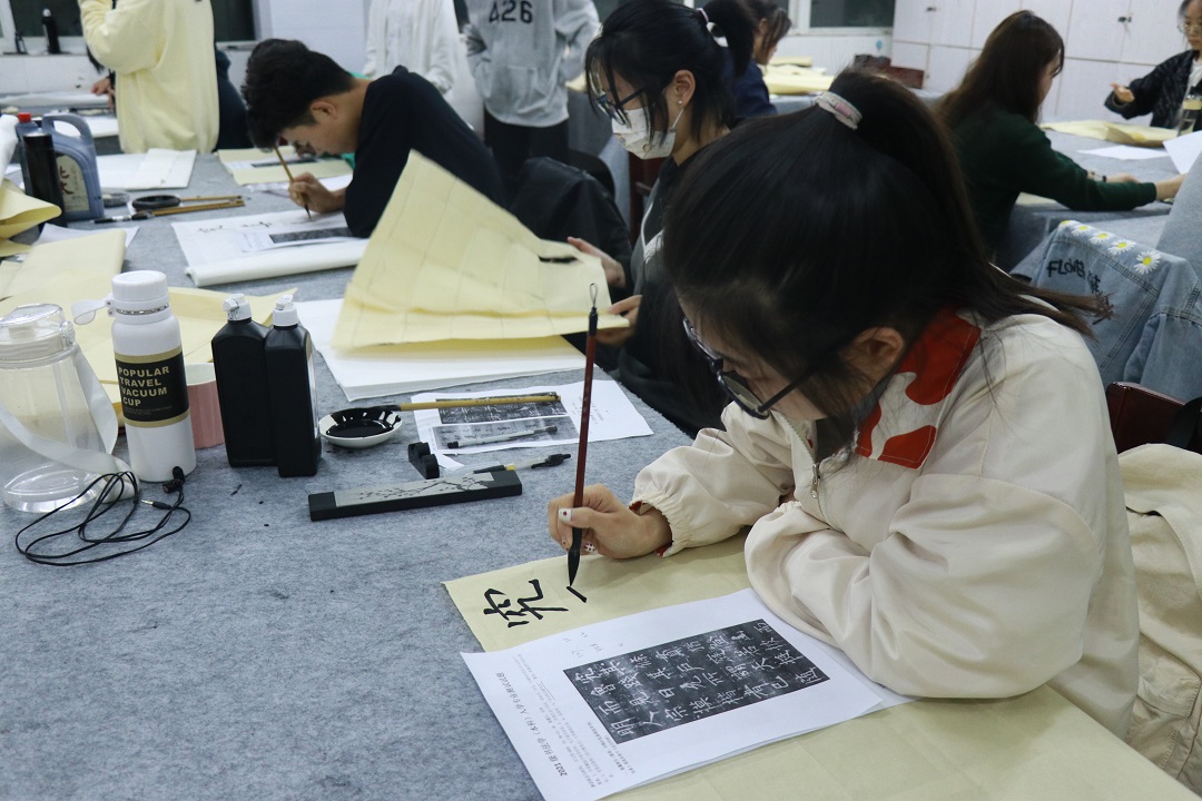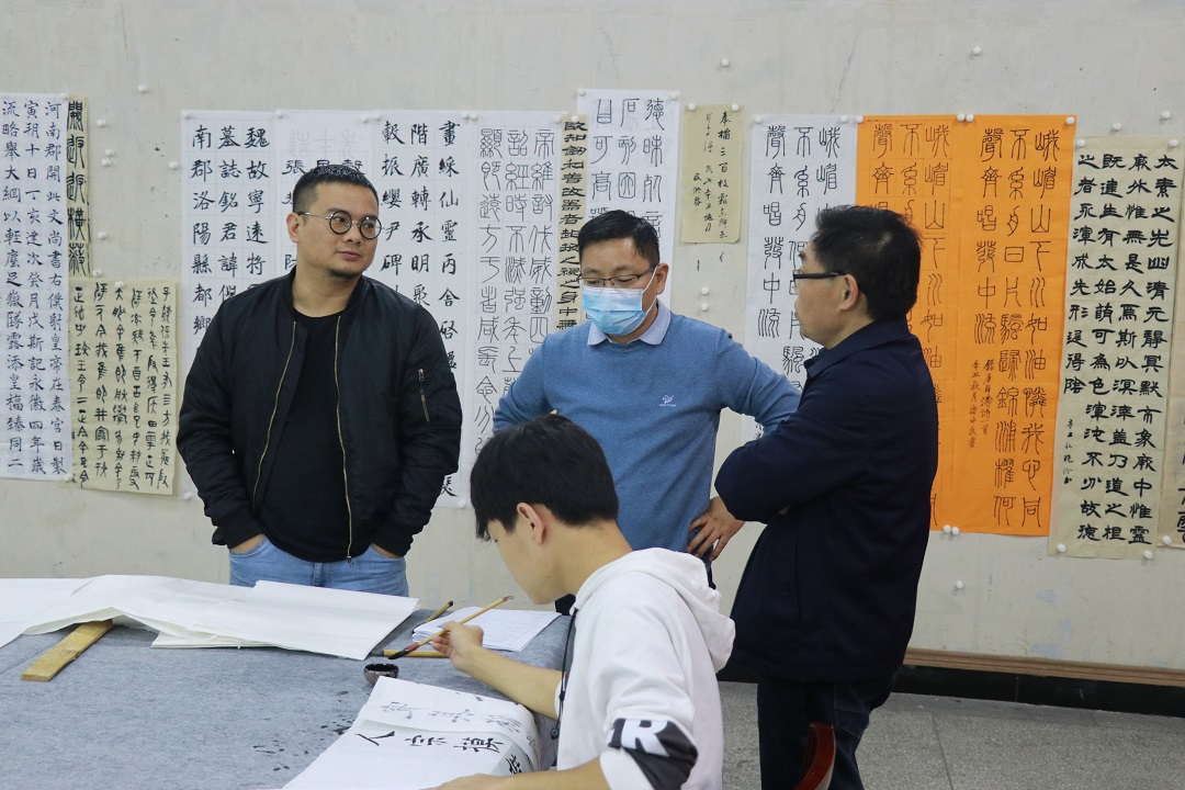 闻博老师介绍,此次测试相较以往的考试内容做出了较大改变,创造性地把文学和书法相结合,加强了对学生综合素质的培养,对提升书法专业教学具有指导与开创意义。同时他也强调,此次考试除了考察字体美观度之外,还增加了对学生书法布局、排版、结构的处理与考察。