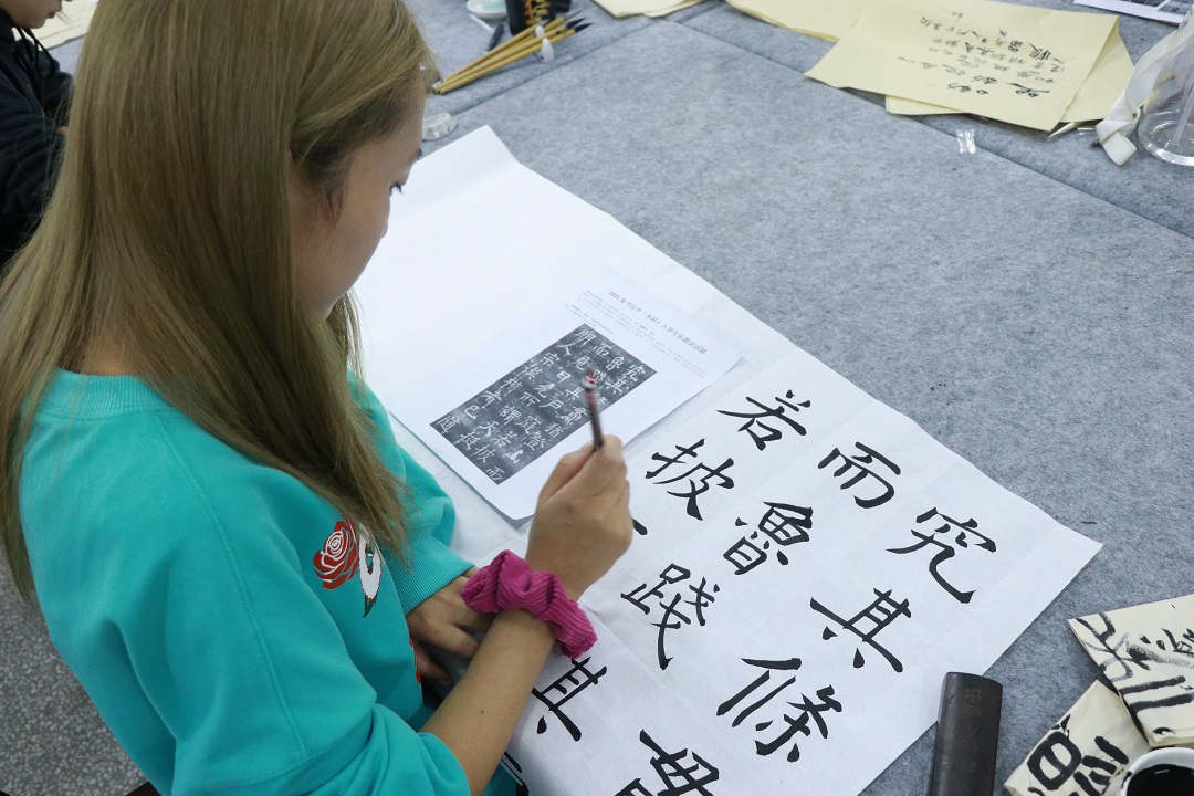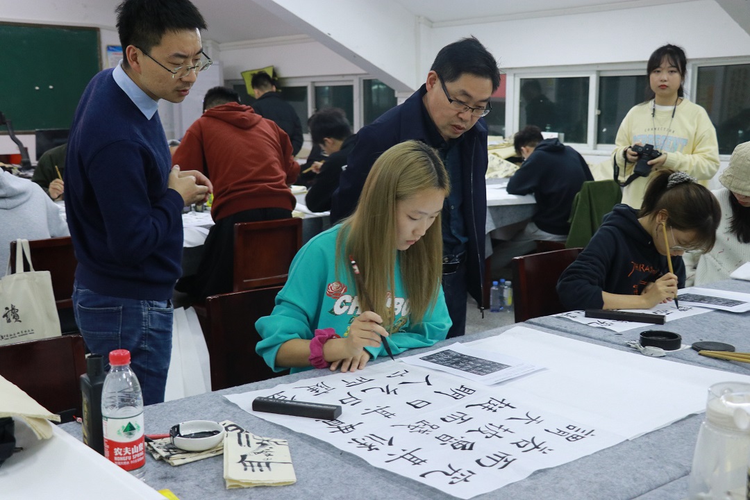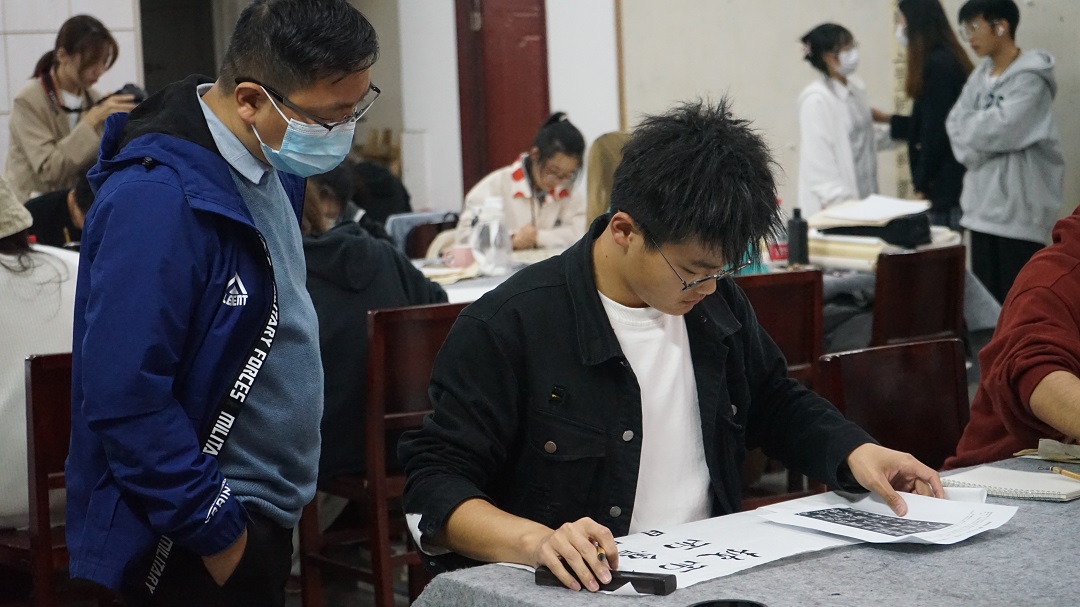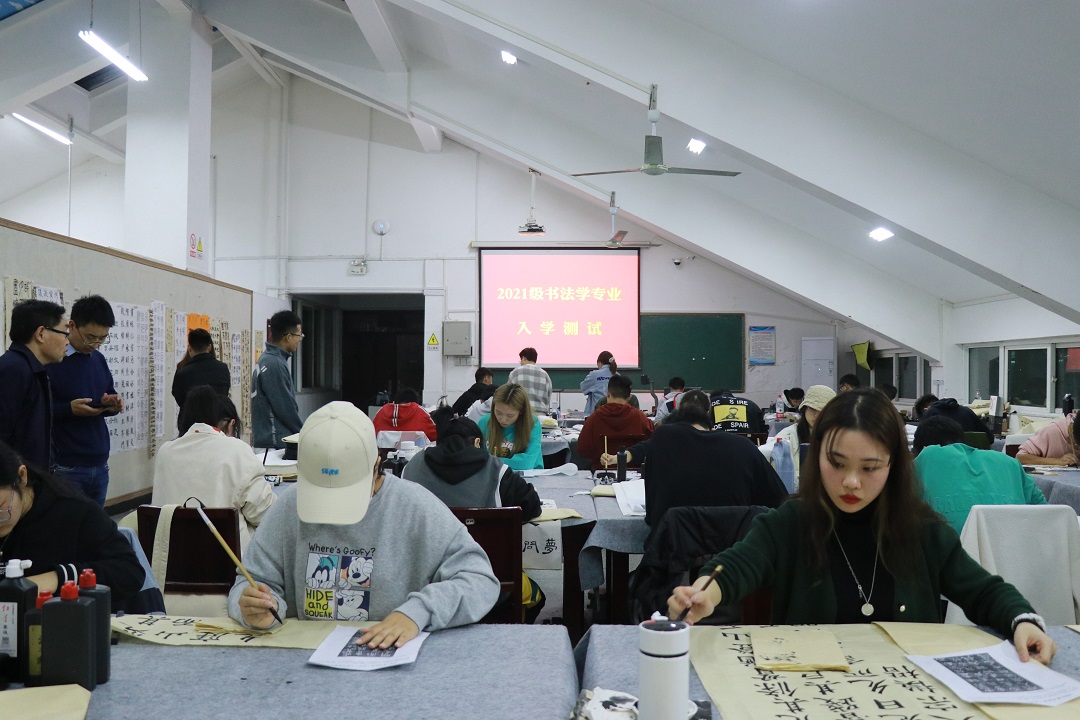 10月28日,文学院书法学专业新生入学测试在崇文楼A800举行。书法教研室黄振东、王刘涛、闻博老师组织并监督考试,文学院副院长曹国军教授莅临指导。