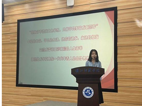 各位选手演讲完毕后,由文学院辅导员郑胜男老师给选手们做了点评。从多方面讲述了演讲需要注意的要点,在肯定选手表现的同时,客观指出了选手存在的问题,并鼓励大家积极参加活动,为评估做贡献。最后四位评委老师对选手进行打分,最终汉语言2204班的胡湘同学荣获一等奖。