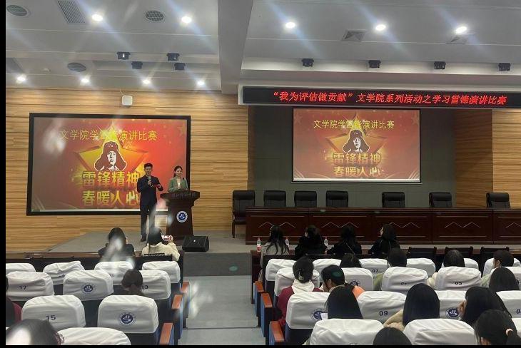 3月24日晚7点,由文学院举办的“我为评估做贡献”系列活动之学习雷锋演讲比赛在明理楼c101举行。陈洁、崔婧、郑胜男、章文婧老师担任评委,文学院22级部分学生观看比赛。经过初赛的选拔,进入决赛的选手有樊会倩、胡湘、何颖妍、刘帜、毛雅琦、周可怡六位同学。