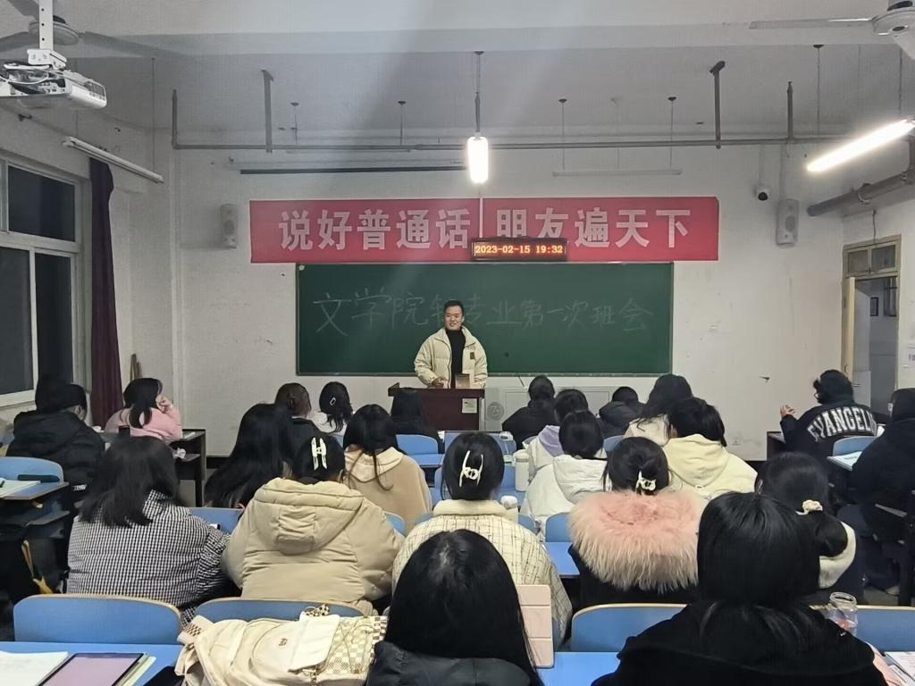 2023年2月13日春季学期顺利开学,为了让同学们尽快融入新学期的学习生活,文学院辅导员组织各班级召开“开学第一课”主题班会。