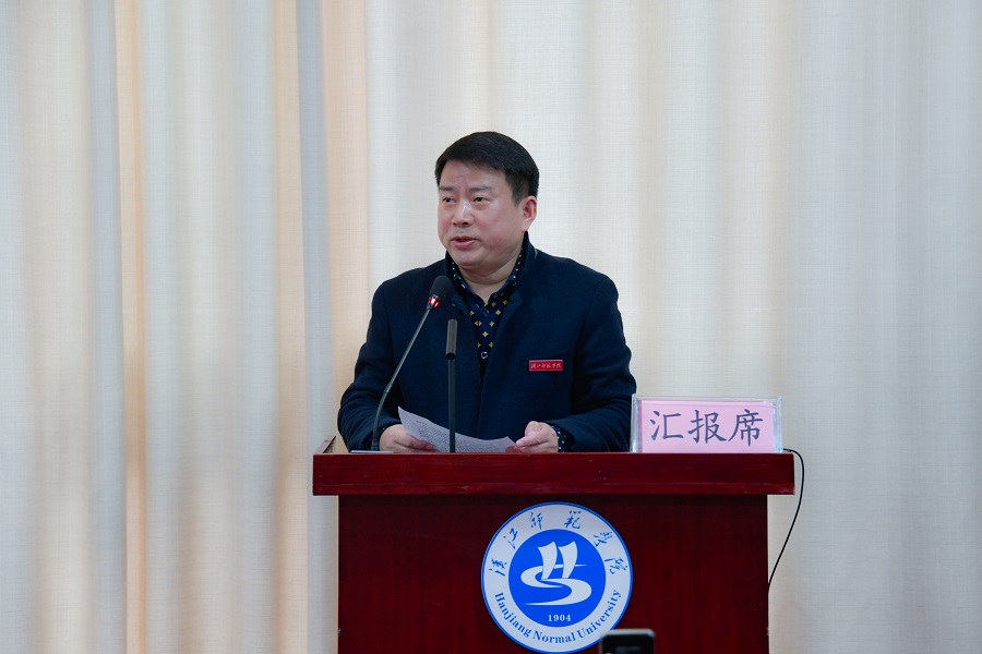 文学院院长郝文华作为汉语言专业负责人向专家组做了汇报,结合专业自评报告和支撑材料,对专业的历史发展、特色和优势等整体情况做了说明。