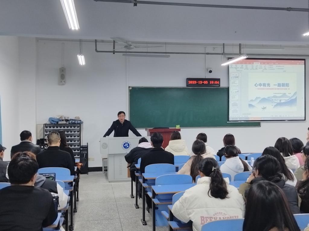 为助力文学院传媒新生厘清专业学习规划,更好成长成材,12月5日晚,十堰热线总编辑王琛一行应邀为网络与新媒体与广播电视编导两个专业大一学生开展“心中有光,一路前行”专题讲座。讲座由新闻传播教研室主任戴文雄老师主持。