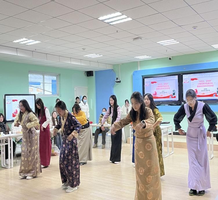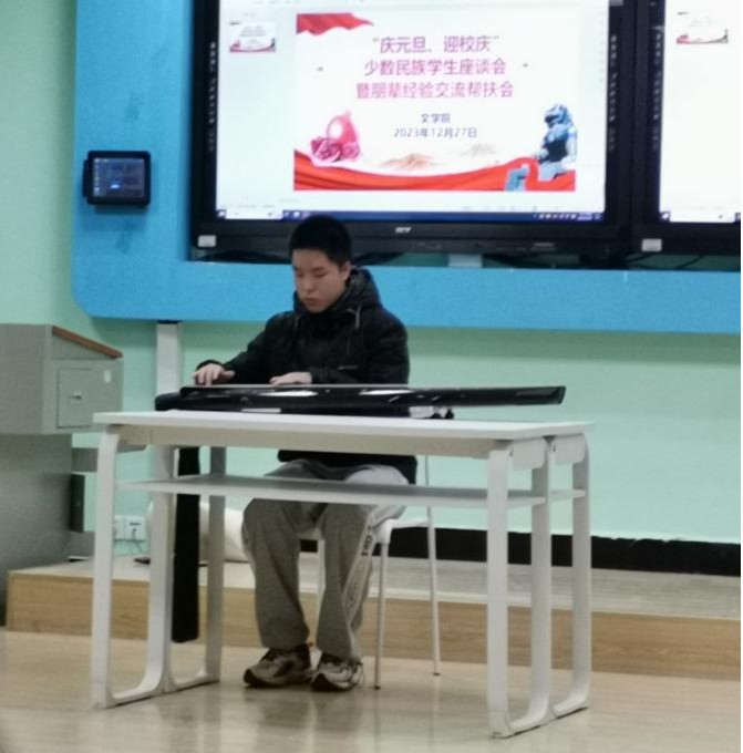 座谈会伊始,由文学院辅导员王妮澳介绍文学院在校少数民族学生基本情况。接下来由三位来自藏族、土家族和壮族的少数民族学生给大家分享了本民族的特色文化。同时少数民族学生也带来各具特色的舞蹈和古琴表演。