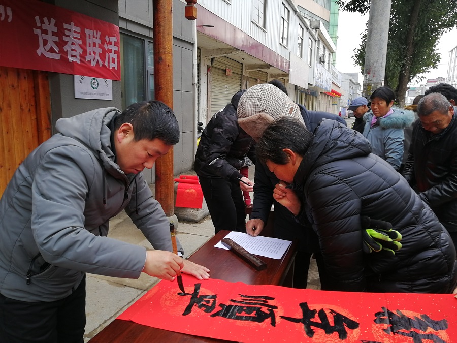 写春联活动在房县化龙镇新时代文明实践所举行,现场群众热情高涨,学院师生奋笔挥书,为房县人民送上2024年的新春祝福,受到房县人民的热烈欢迎和交口称赞。