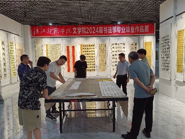 6月13日下午,文学院书法学专业2024届毕业作品展开幕式在十堰市震洋美术馆举行。