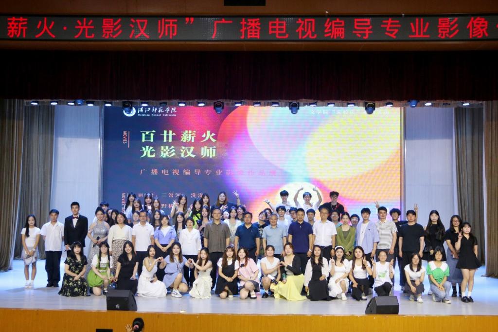 6月21日晚,由汉江师范学院文学院和汉江师范学院传媒研究中心联合主办的“百廿薪火 光影汉师”影像作品展在南风剧场举行。十堰市茅箭区文联主席卜昌学、十堰广播电视台融媒体电视节目中心主任徐进、人民日报数字传媒段浩主任、湖北光迅文化传媒有限公司总经理郝飞、汉江师范学院党委宣传部副部长周敏以及文学院院长郝文华、文学院分党委书记曹弋等老师出席活动。