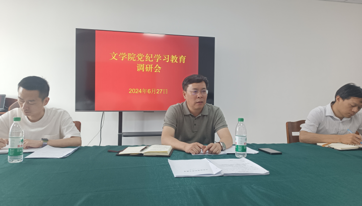 针对文学院党纪学习教育,付书记强调,开展党纪学习教育是党中央重大战略部署,要准确把握工作目标要求,按照学校部署,做实“九个一”活动,推进学习教育取得实效。付书记肯定了文学院所做的工作,指出文学院党纪学习教育工作扎实,推动了学院各方面工作,成效明显。付书记还对暑期前后的工作进行提示,要求学院做好上半年工作回顾,早谋划、早部署下半年各项工作,经常性开展师生安全教育。付书记还对其他工作提了具体要求。