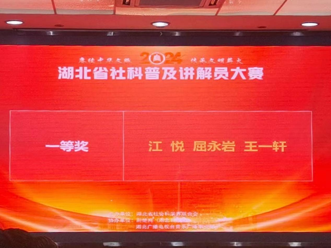 近日,湖北省第三届社科普及讲解员大赛决赛在武汉举行,我院屈永岩老师荣获大赛一等奖,并将代表湖北省参加第三届全国社科普及基地讲解员大赛。
