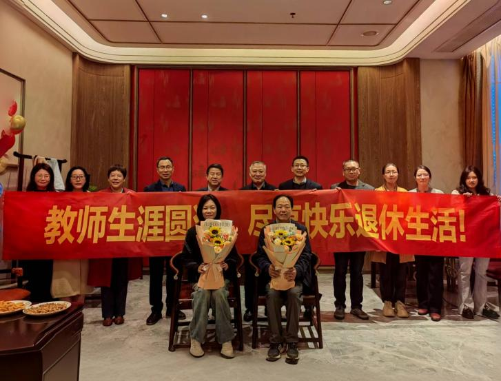 岁月如歌,桃李芬芳。为进一步做好关心关爱退休职工工作,增强退休职工的职业荣誉感、仪式感和归属感,弘扬关爱老同志、学习老同志、注重老同志的优良传统,表达对在教育岗位上辛勤奉献几十载的退休教师的诚挚感谢与敬意,10月23日下午,文学院为江尚权、姚洁两位老师举行一场温馨而隆重的荣休欢送会,学院领导班子成员和两位老师所在的教学技能教研室的教师们参加了此次欢送会。