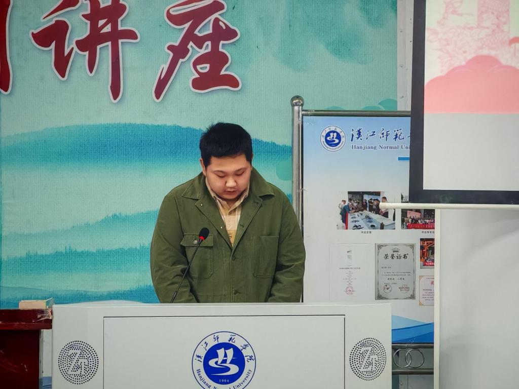 接下来,校团委书记潘彦冰致辞,他在讲话中指出了学代会的重要意义,强调了学生代表的榜样作用。并以“我们一起秉承文学院传统的文脉”及“展示文学院一届届学子的素质和形象”这两句话,作为对文学院学生的祝福。